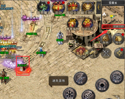 守护的合成在盟重右下的方向,坐标(334.339)处的灵光仙子,