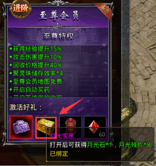 1.开通至尊会员赠送月光宝匣,开启获得月光石*1,月光残片*8