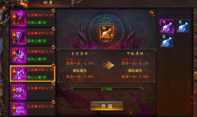 属性升级:多余的玉净瓶可以用来升级,进一步提升装备实力。