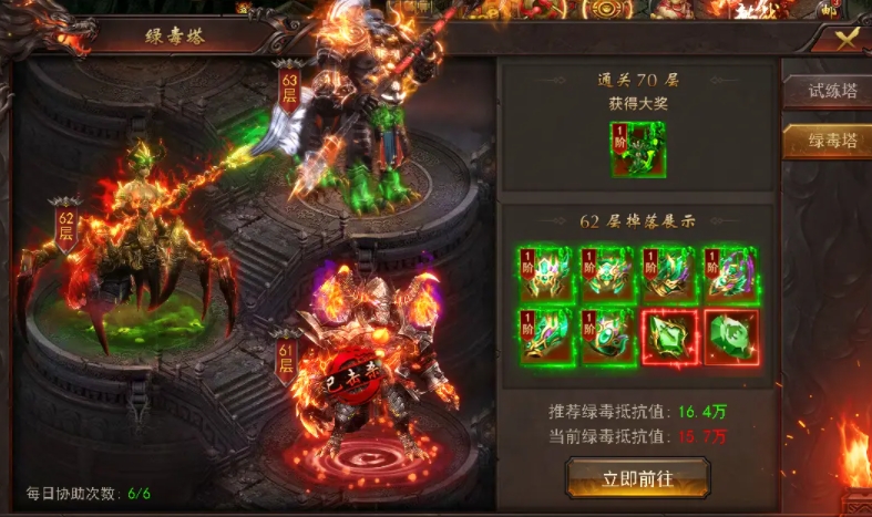 绿毒装备收集:在晚上的封魔霸主活动中,专注于收集绿毒装备和绿毒水晶。