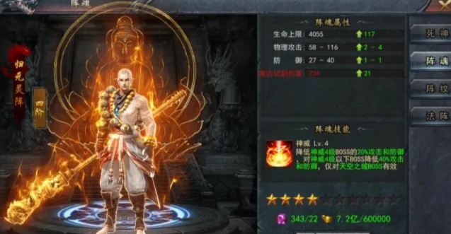 阵魂不仅提升属性,还能解锁特殊的阵魂技能——神威。这项技能能够降低神威BOSS的攻击和防御,具体效果为: