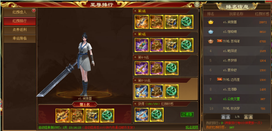红颜好感第1(红颜好感5000可参与):八阶·帝王弩、八阶·帝王玺、帝王至宝*1、帝王装备碎片*100