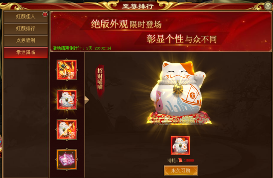 ★重点★可使用18888点券打包购买法宝·招财喵喵+坐骑·幸运锦鲤,尊享7折优惠