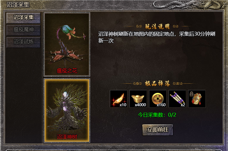 采集物每日有效采集次数2次,采集神树奖励更高,但是难度也越大