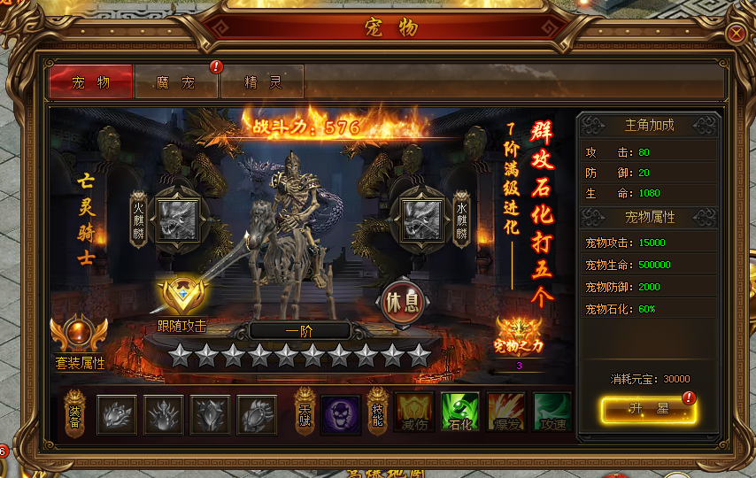 宠物超强攻击力,且具有石化BOSS的效果。宠物升级仅靠元宝,宠物升级可以获得更强的属性和酷炫的外形,宠物石化100%免费送