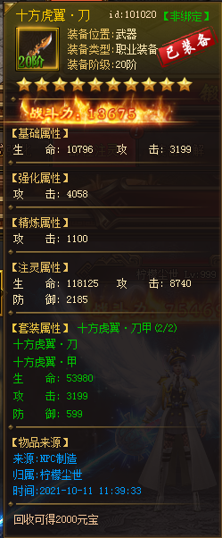 可通过消耗注灵石提升八个职业装备部位的强化属性加成,并可获得强化套装属性