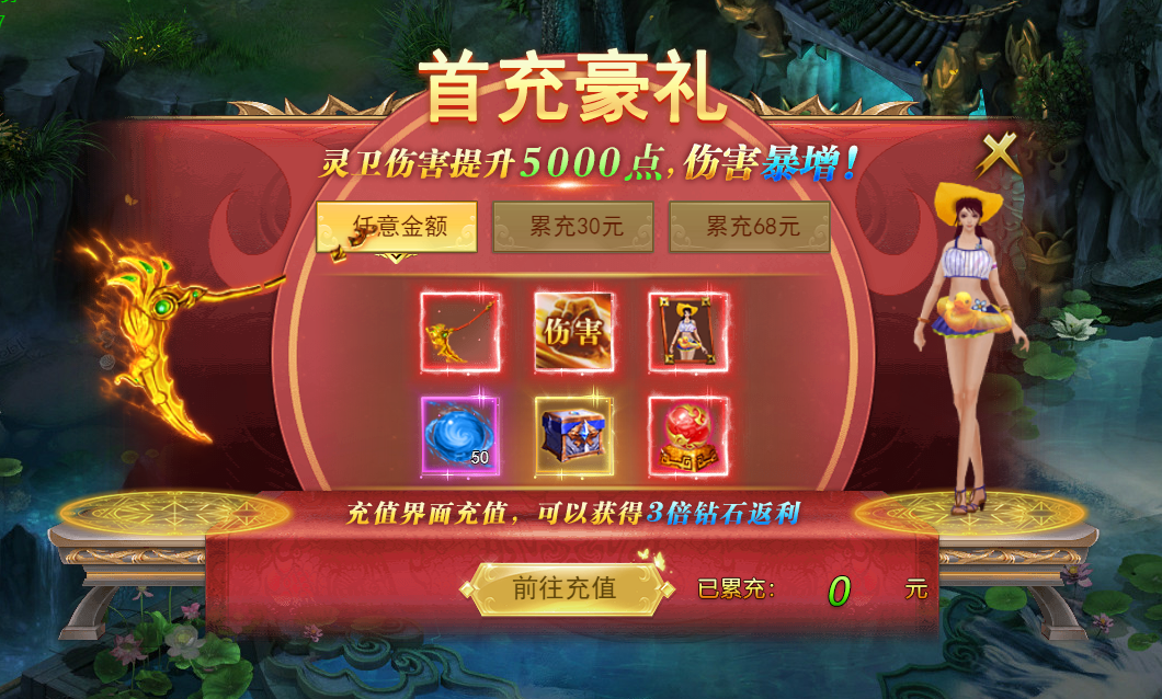 活动说明:活动期间,首充金额达标即可领取精彩豪礼。