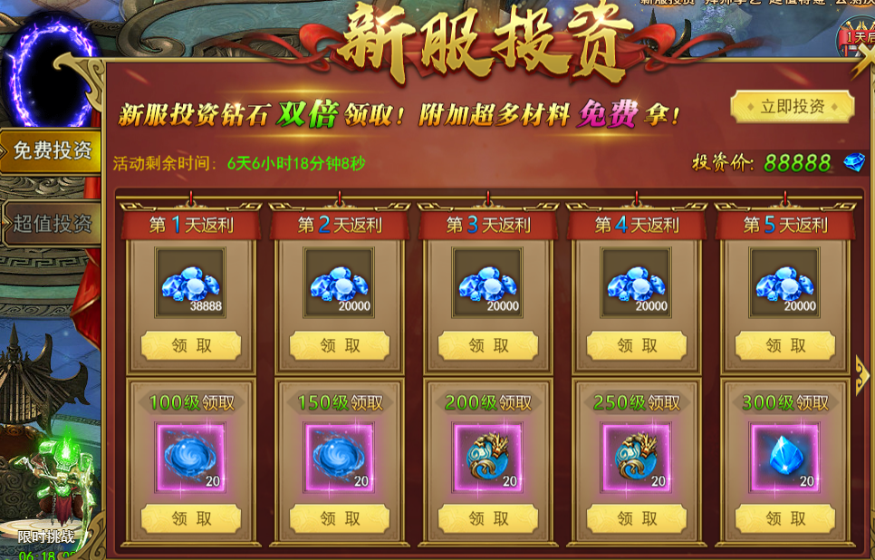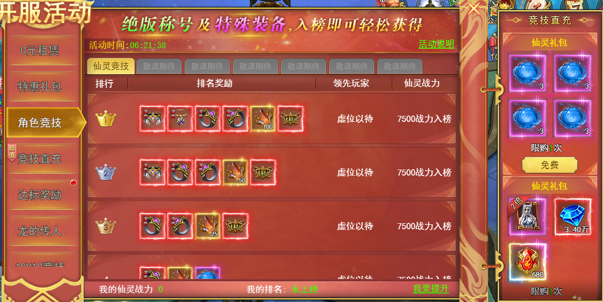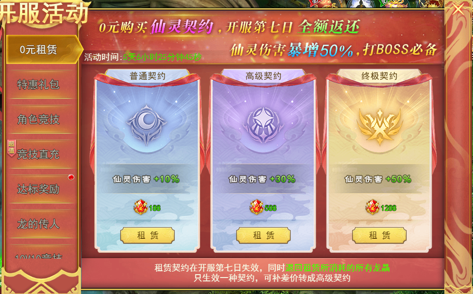 活动说明:0元购买仙灵契约,开服第七日全额返还。