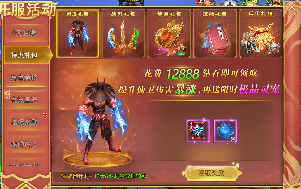 活动说明:活动期间,玩家可以消耗钻石购买特惠礼包。