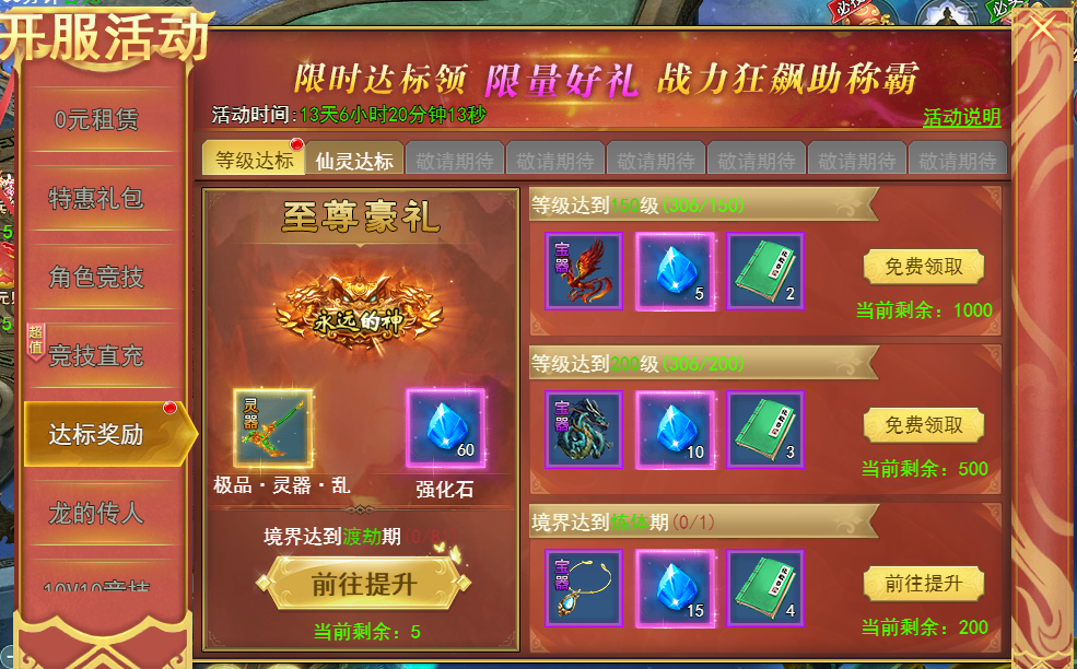 活动说明:活动期间,累计充值达标即可领取精彩豪礼。