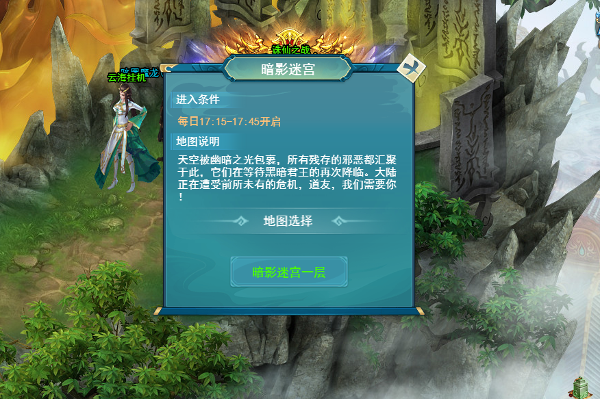 活动开启时,玩家可以通过仙王大陆暗影迷宫NPC进入暗影迷宫地图。