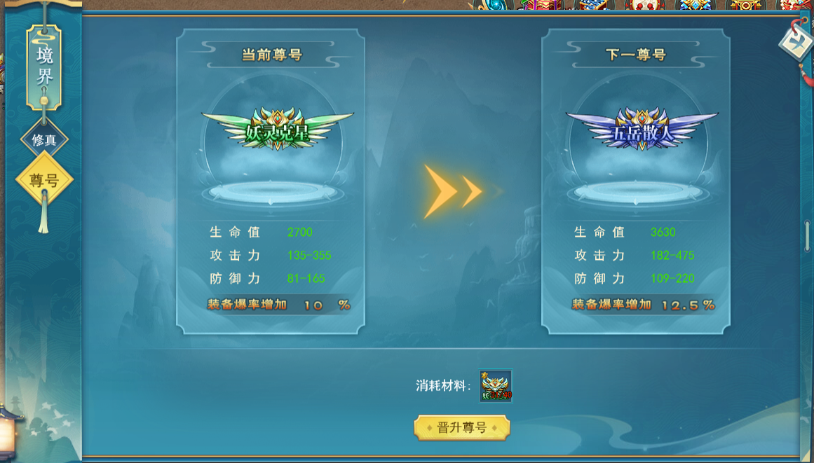 提升尊号系统可加成角色基础属性,尊号等级越高,属性加成越高,同时装备爆率也会增加。