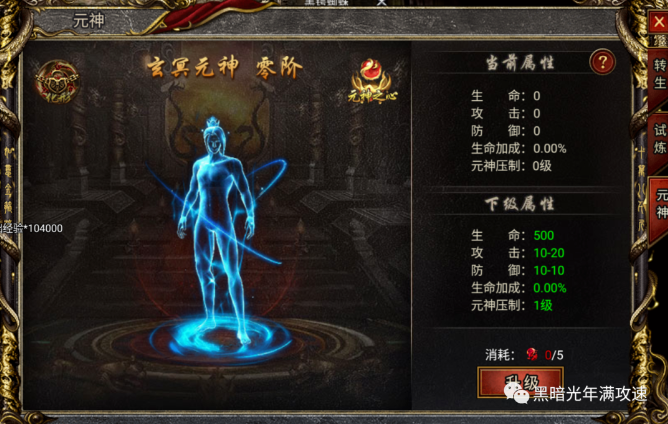 还可以激活元神之心—元神心盾:被其他玩家攻击时,受到的伤害降低2%*元神心盾等级差。