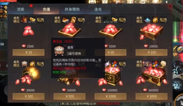 终身限购礼包:购买后不仅能获得钻石奖励,还有大量珍稀材料,提升角色实力的绝佳选择!