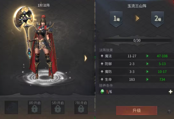 法阵系统在角色达到4转时开启,能够显著提升玩家的攻击、防御、魔防和生命属性。通过合理利用法阵,玩家可以在游戏中获得巨大的优势。