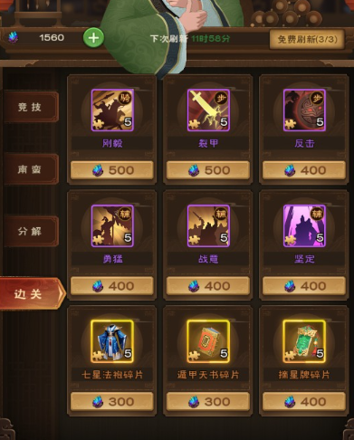 在镇守边关玩法中获得的百炼石,是游戏中非常重要的资源。它可以用于兑换技能和装备碎片。在这里,给大家一个小建议:优先兑换装备碎片。因为在《城主天下》中,装备碎片的获取难度相对较大,而镇守边关商店是获取装备碎片的重要途径之一。通过兑换装备碎片,主公们可以快速提升装备等级,从而增强自身实力。