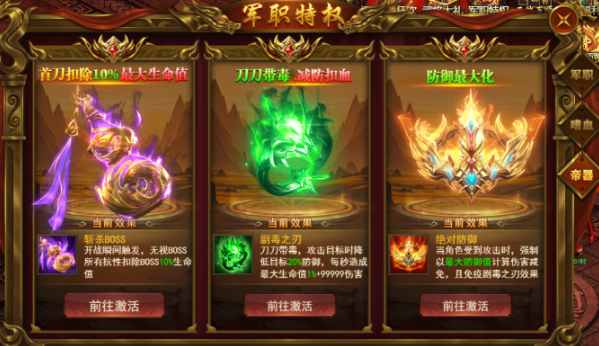 军职特权是《霸者天下》里"一分钱一分货"的系统。轻骑拿基础,中高阶堆星级,都尉都督抢BOSS和PK,大将军免疫剧毒站撸无敌。建议根据预算选择档位,但轻骑军职是底线,嗜血之怒的永久属性必须拿到手。