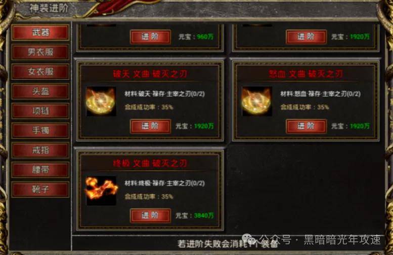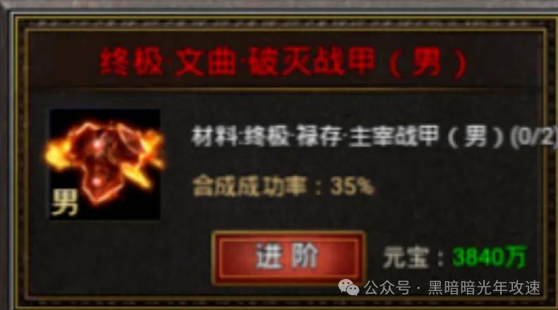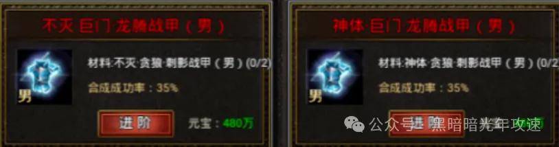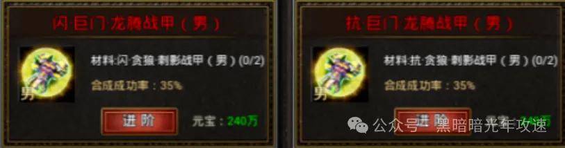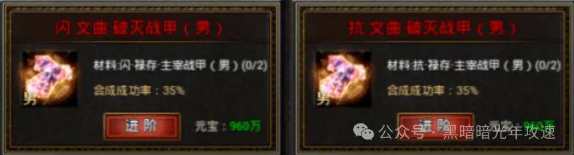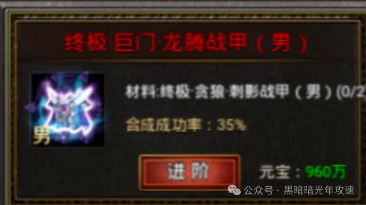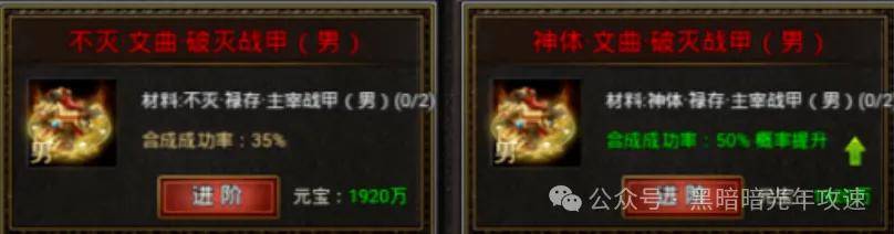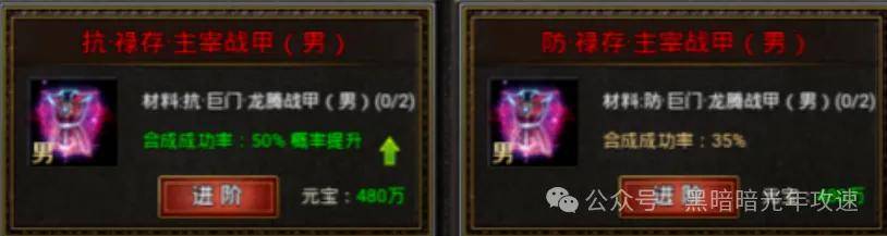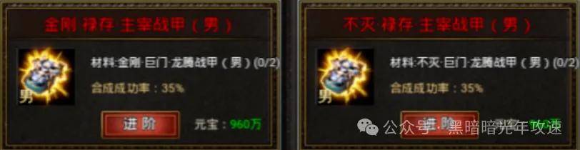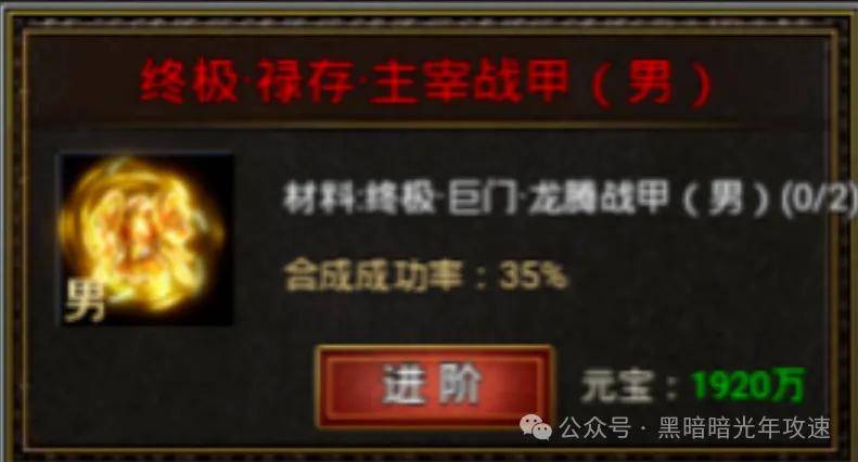 最后说个最省元宝的合成路径:按照终极属性装备,9转→12转→15转→18转的路径去合成是最省元宝的,但是需要勇士们先通过进阶\融合,合出9终极或12终极再通过进阶的方式按照上述路径去合成。