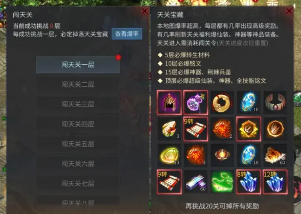 每天白送的转生材料、神器、仙装,你居然只爬到5层就停手?勇闯天关的隐藏收益,90%的玩家都没吃满!