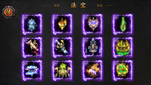角色15转后开放法宝系统,装备界面右上角宝剑图标进入。12件法宝位:昆仑镜、诛仙剑、照妖镜、琉璃瓶、伏羲琴、功德笔、锁妖塔、乾坤鼎、净世莲、定风珠、金葫芦、禁神珠,星级越高属性越强,合成成功率100%。