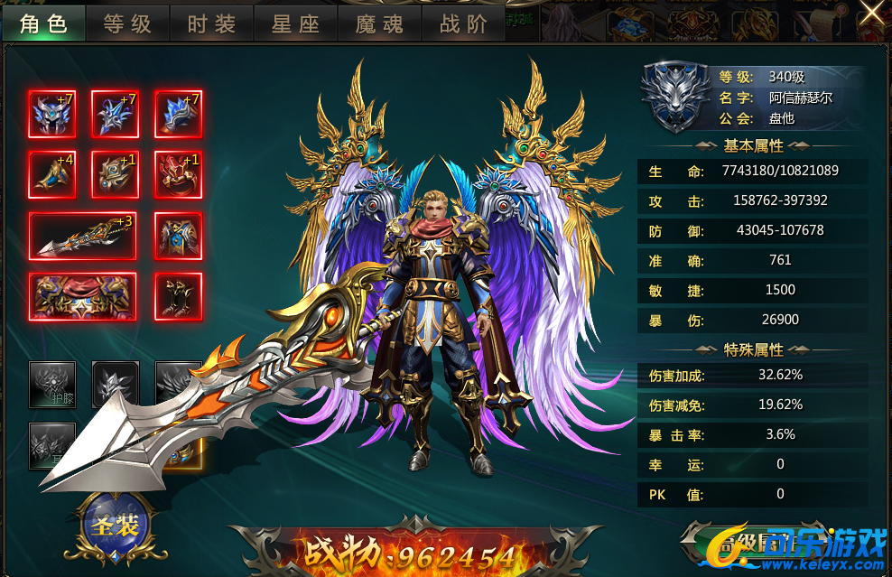 特殊装备中分为6部分,分别是护膝、面甲、护肩、耳环、吊坠、护符