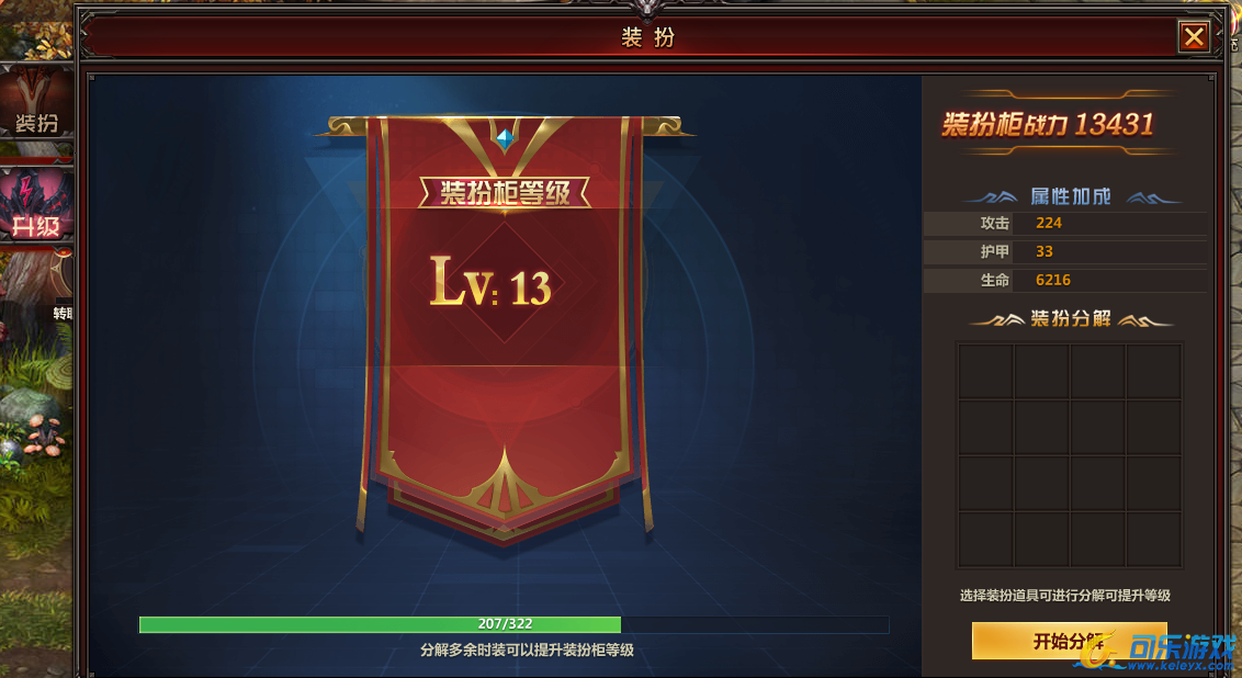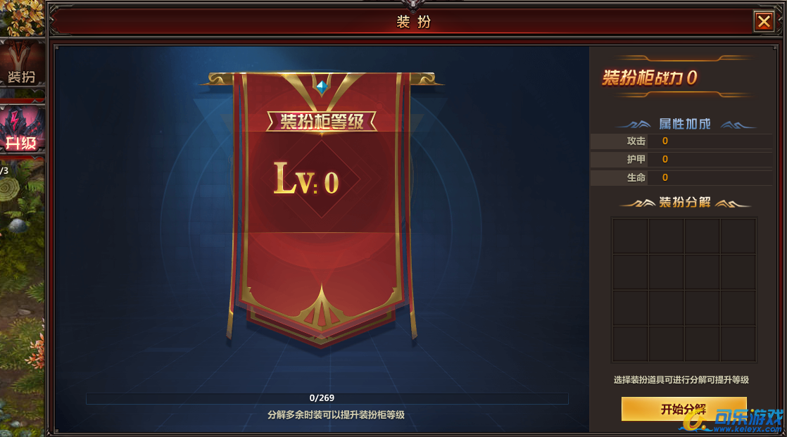 Ø 装扮升级:装扮系统主界面中的第二个标签页:装扮柜升级。通过升级VIP和活动获得的多余装扮道具,可以在装扮柜中进行装扮分解,分解后的装扮材料可以变成经验升级装扮柜。装扮柜等级越高,为玩家提供的属性加成越高。