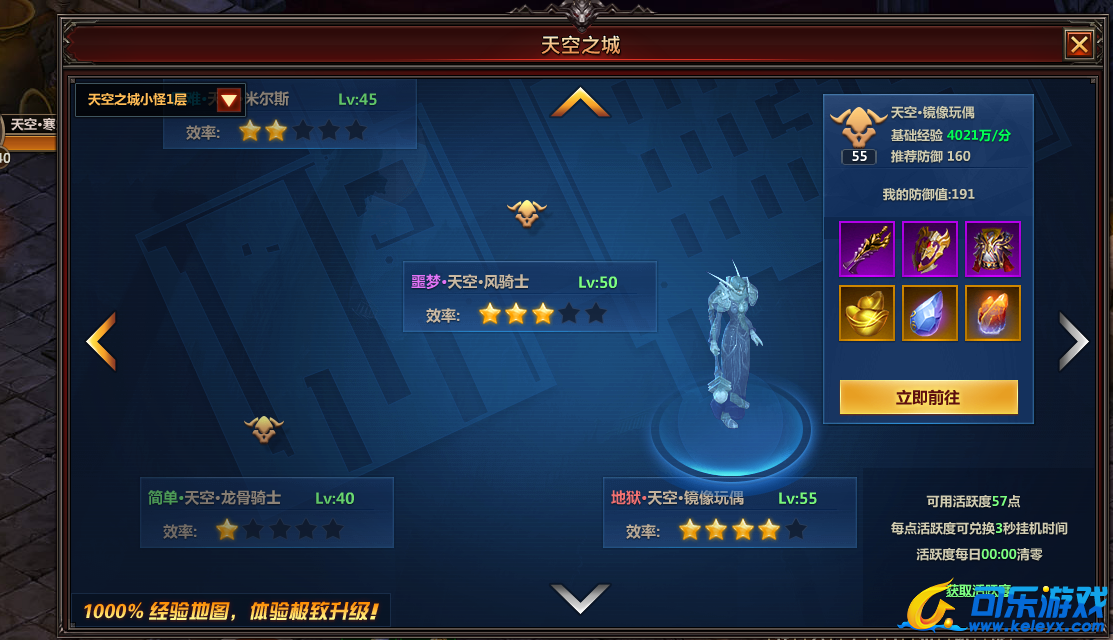 点击进入天空之城,挂机难度分为了简单、噩梦、地狱三种模式