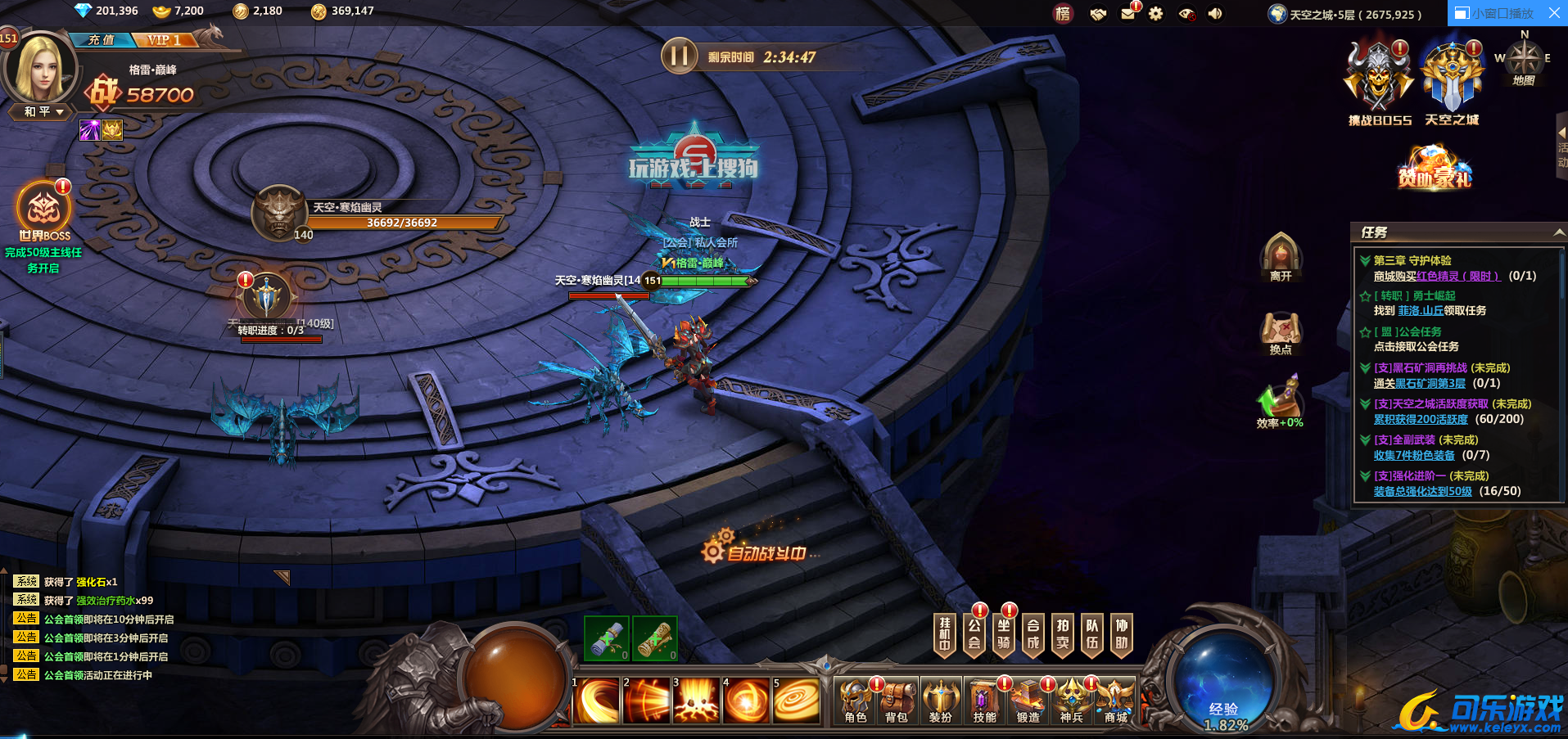 要战力:天空之城、装备进化、拍卖行。装备追加、装备强化、公会boss