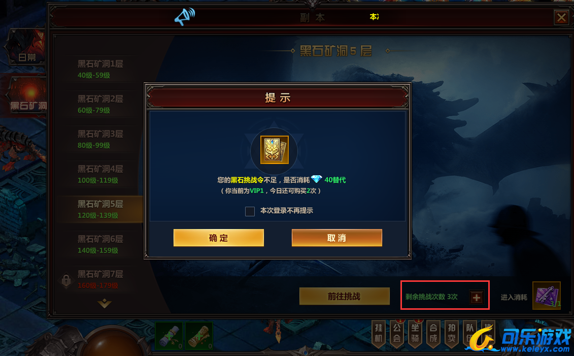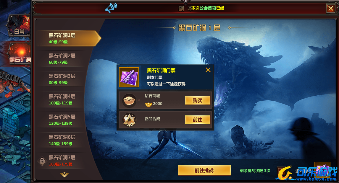 进入矿洞需要消耗黑石矿洞门票,门票可在钻石商城购买,也可在物品合成中进行合成。