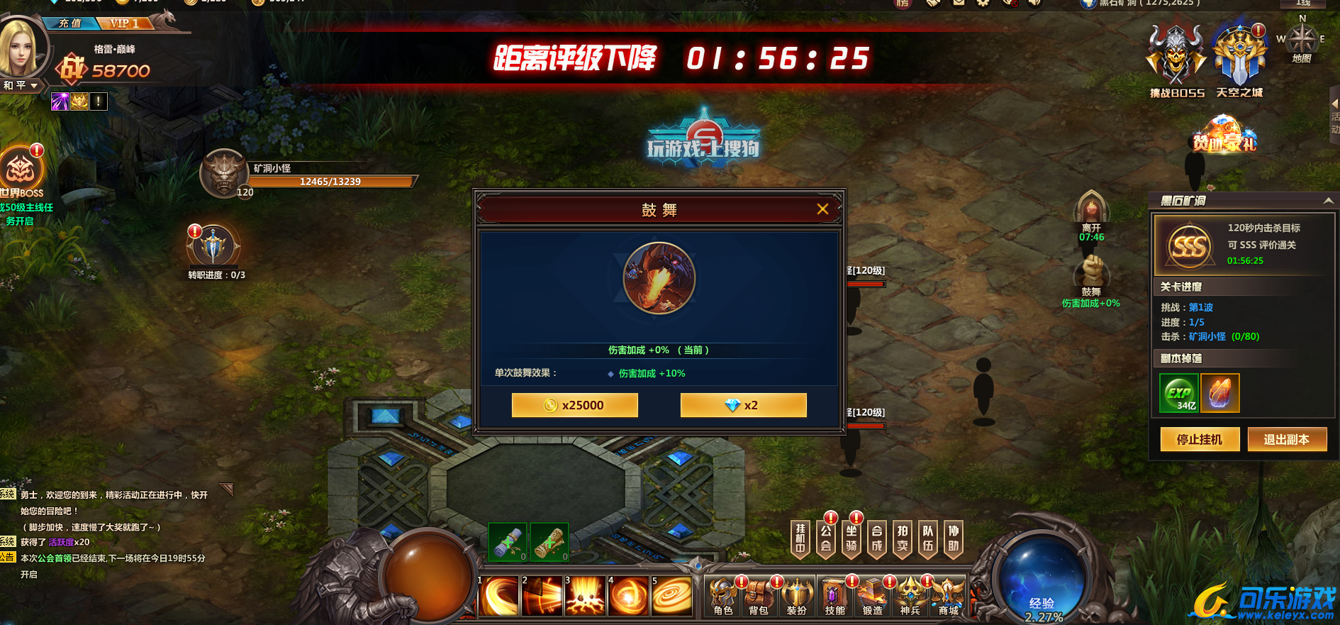 进入副本后,可看到看到评级倒计时,120秒内通关,可获得sss 通关评价