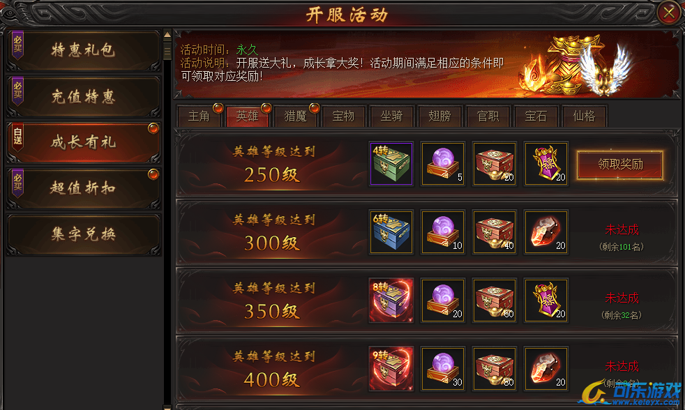 说明:活动期间英雄满足条件即可领取大量奖励