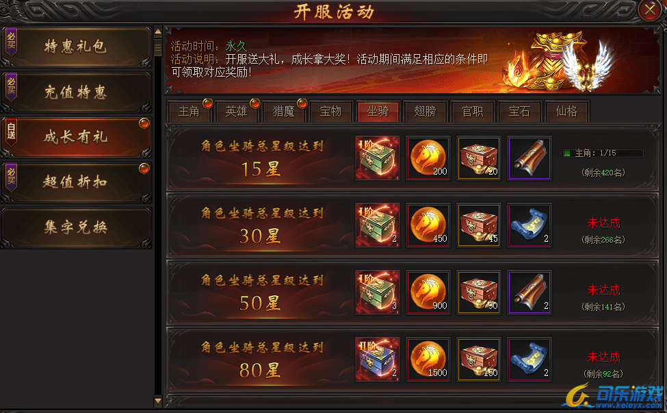 说明:活动期间坐骑等阶满足条件即可领取大量奖励