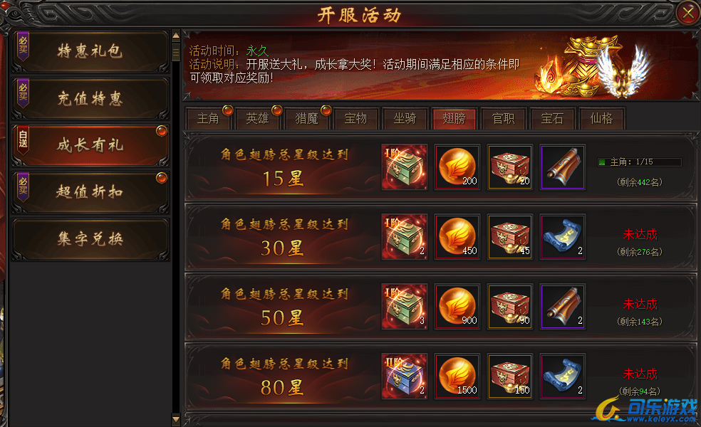 说明:活动期间翅膀等阶满足条件即可领取大量奖励