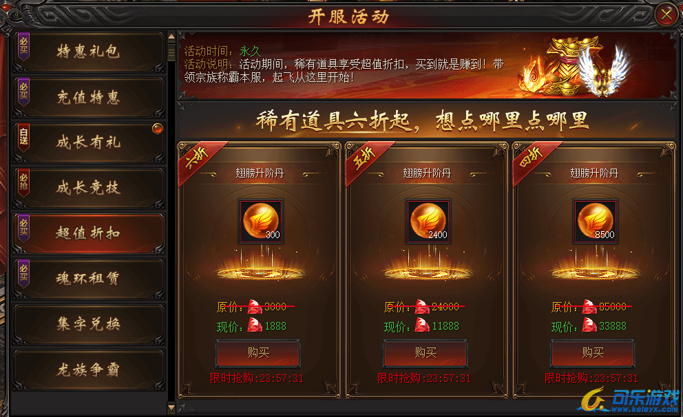 活动说明:1.稀有道具六折起,每日零点换主题。