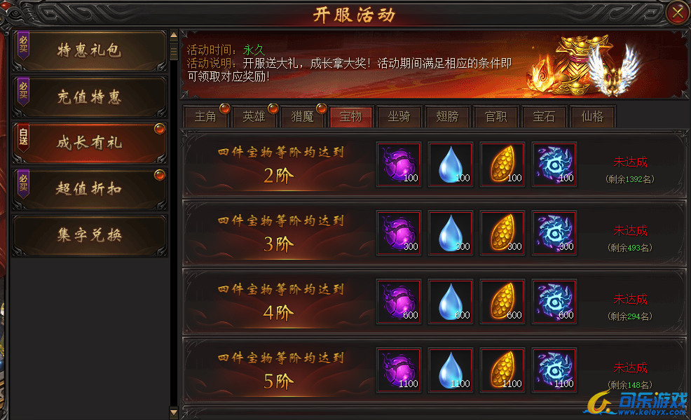 说明:活动期间宝物等阶满足条件即可领取大量奖励