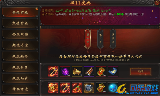 活动说明:活动期间,每日登录游戏可领取奖励,激活至尊特权可额外领取一份!