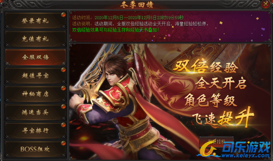 活动说明:活动期间,全服双倍经验活动全天开启,海量经验轻松得。双倍经验效果可与经验玉符和经验天书叠加!