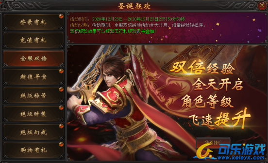 活动说明:活动期间,全服双倍经验活动全天开启,海量经验轻松得。双倍经验效果可与经验玉符和经验天书叠加!
