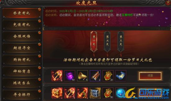 活动说明:活动期间,每日登录游戏可领取奖励,激活至尊特权可额外领取一份!