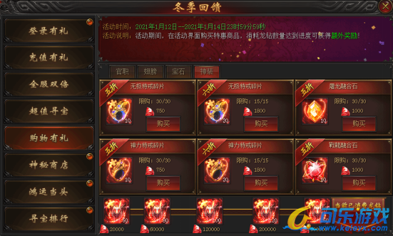 活动说明:活动期间,在活动界面购买特惠商品,消耗龙钻数量达到进度可获得额外奖励!