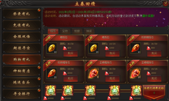 活动说明:活动期间,在活动界面购买特惠商品,消耗龙钻数量达到进度可获得额外奖励!