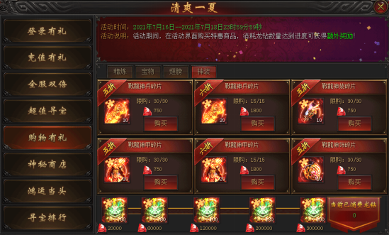 活动说明:活动期间,在活动界面购买特惠商品,消耗龙钻数量达到进度可获得额外奖励!