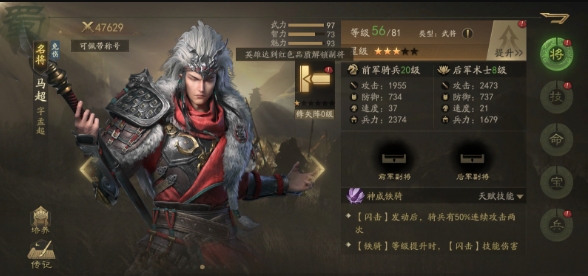 后军技能:主要根据主将的特性选择。例如,孙策适合“决胜千里”,郭嘉适合“力挽天狼”。