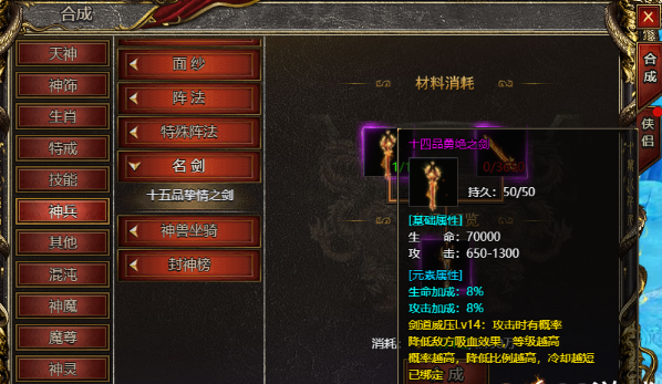 在《白蛇传奇》中,名剑碎片是合成和升级神兵名剑的关键材料。通过游戏内的“神兵-名剑”界面,玩家可以消耗碎片锻造出具备特殊威能的专属装备。名剑装备不仅能提升角色的攻击力和生命值等基础属性,还附带【剑道威压】特效,攻击时概率削弱目标吸血效果,随着装备等级提升,触发概率、压制比例及冷却缩减都将同步强化,堪称PVP对抗中的制胜利器。