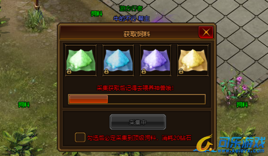 玩家可在帮会驻地采集饲料来喂养帮会神兽;每次只可采集一个饲料,确定收取饲料后才会获得饲料,饲料的等级越高喂养神兽获得的祝福值越高,祝福值满后,可由帮主、副帮主、长老开启神兽祈福!
