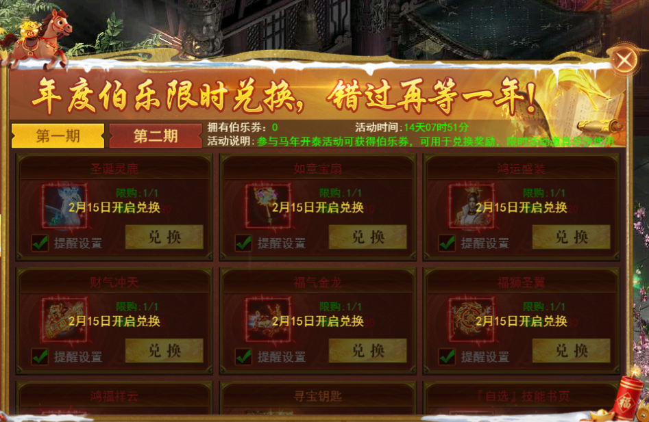 年度伯乐限时兑换,海量稀有道具、装备等你来拿!