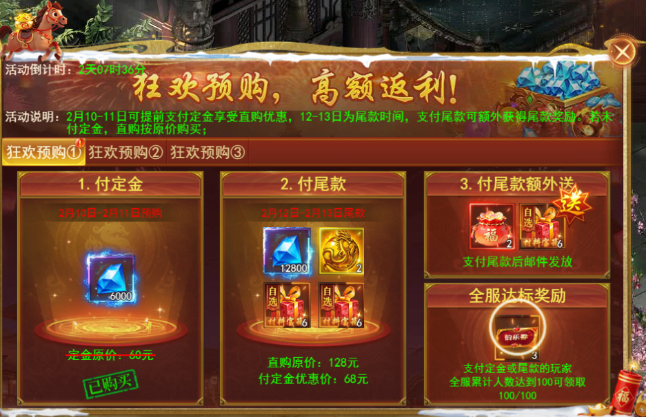 七、狂欢预购(2月10日-2月13日)