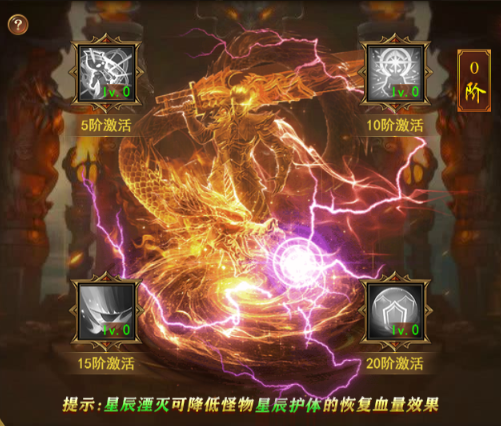 星神:消耗星璇灵丹(摘星阁、星辰试炼获取)可升阶星神阶级,获得基础属性和星辰湮灭值,提高星辰湮灭值可降低星辰BOSS恢复效果,达到指定等级后还可激活特殊效果!