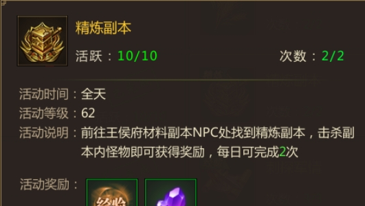 每日精炼副本:玩家可以通过参与每日精炼副本来获取精炼石,每天上限为2次。通过消耗金子,玩家还可以获取双倍奖励。