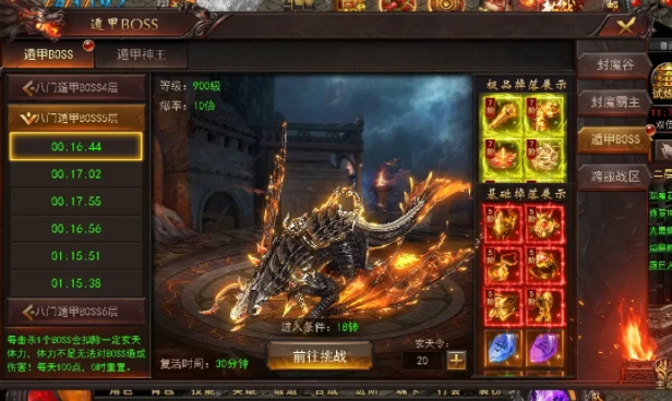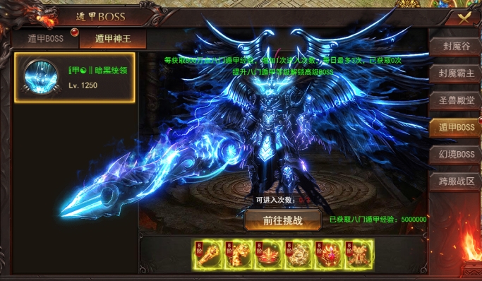 遁甲神王:随时可以进入,但每天只能挑战三次,击败遁甲神王可以获得防御装。